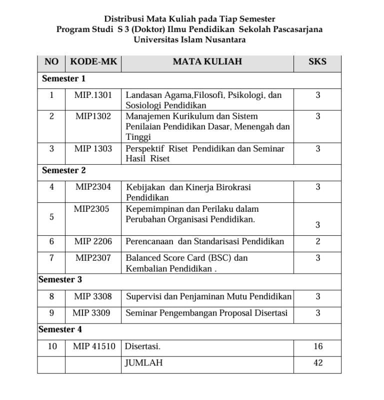 Untuk mencapai profil lulusan yang diharapkan, dirancang proses pencapaian yang secara sederhana bisa dilihat dari struktur kurikulum dalam bentuk pembagian mata kuliah pada setiap semester. Berikut ini struktur kurikulum berupa pemetaan mata kuliah untuk mencapai profil lulusan.